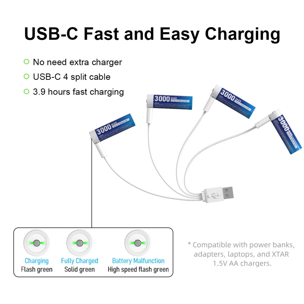 • Model: 1,5V AA LR 3000mAh USB-C